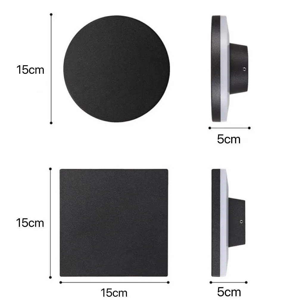 黑色圓形 15cm 5cm 内建LED 10W 單色(可選:白光、黃光) 鋁材、亞克力