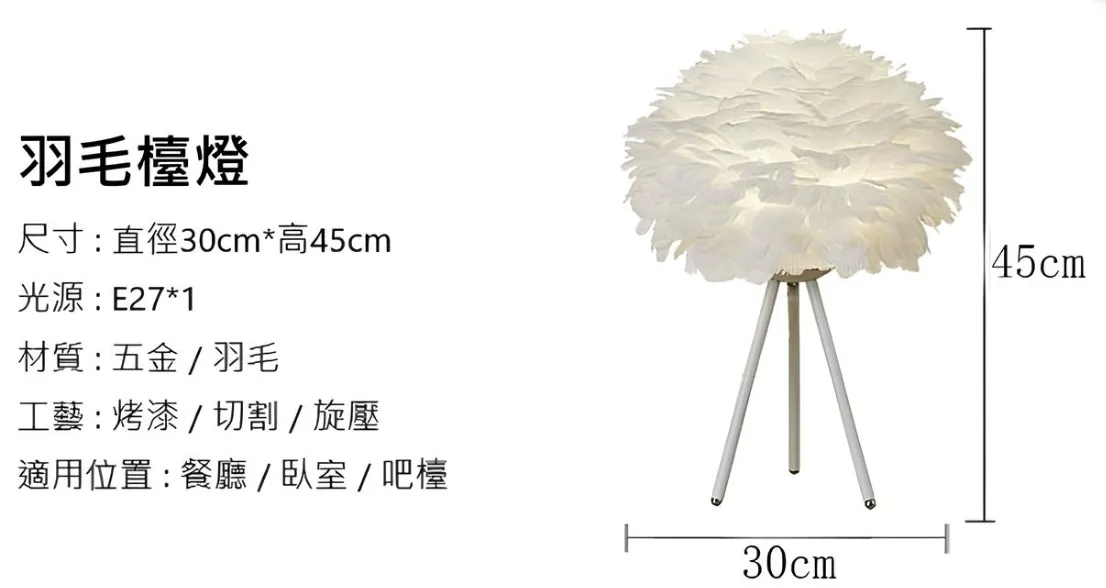 F 直徑30cm 45cm LED-E27*1 插頭+按鈕 五金、羽毛